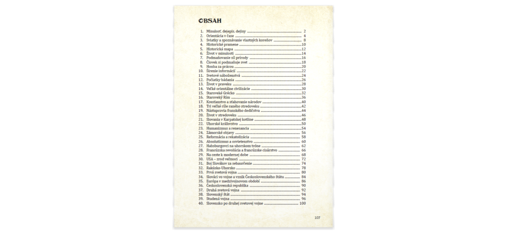 Praktická brožúrka vo formáte A6 obsahuje prehľad historických poznatkov od najstarších dejín ľudstva až po súčasnosť.