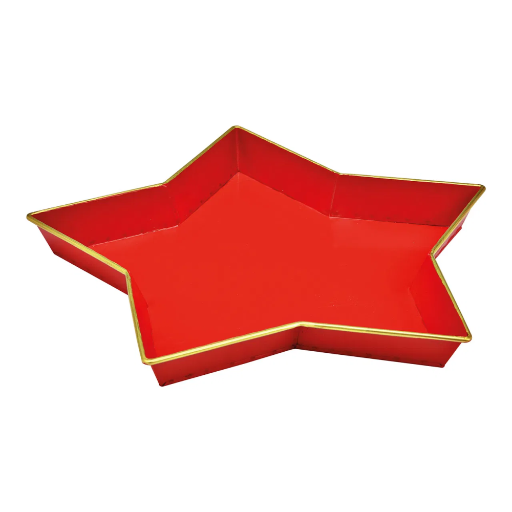 Dekoratívny tanier, hviezdicový, vyrobený z červeného kovu (Š/V/H) 31x3x31cm