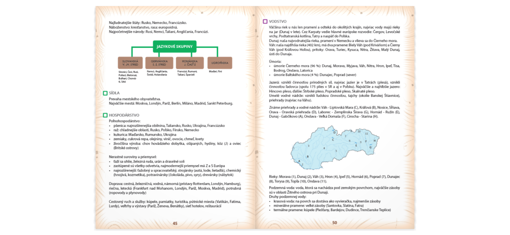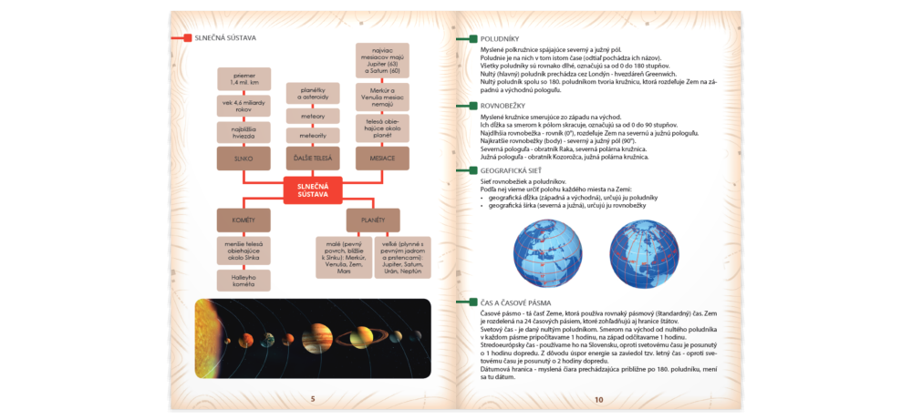 Brožúrka Geografia ZŠ do vrecka v praktickom formáte A6 obsahuje prehľad poznatkov o planéte Zem a jej postavení v slnečnej sústave, všeobecné poznatky o jej povrchu, prírode, obyvateľstve a hospodárstve, ale aj jednotlivých kontinentoch a svetadieloch. Samostatná kapitola je venovaná Slovensku. Publikácia nadväzuje na učivo na základných školách a pomôže najmä pri rýchlom opakovaní a upevňovaní si nadobudnutých vedomostí.