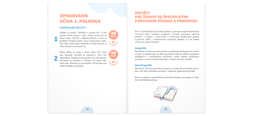 Publikácia zohľadňuje predpísané požiadavky Štátneho vzdelávacieho programu na zameranie, rozsah a náročnosť diktátov.