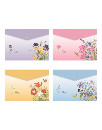 • Obal s gombíkom, A4, Kvetinový