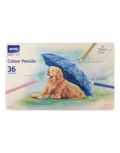 Pastelky 36ks, pastelové/metalické/klasické x12, trojhranné, v plechu