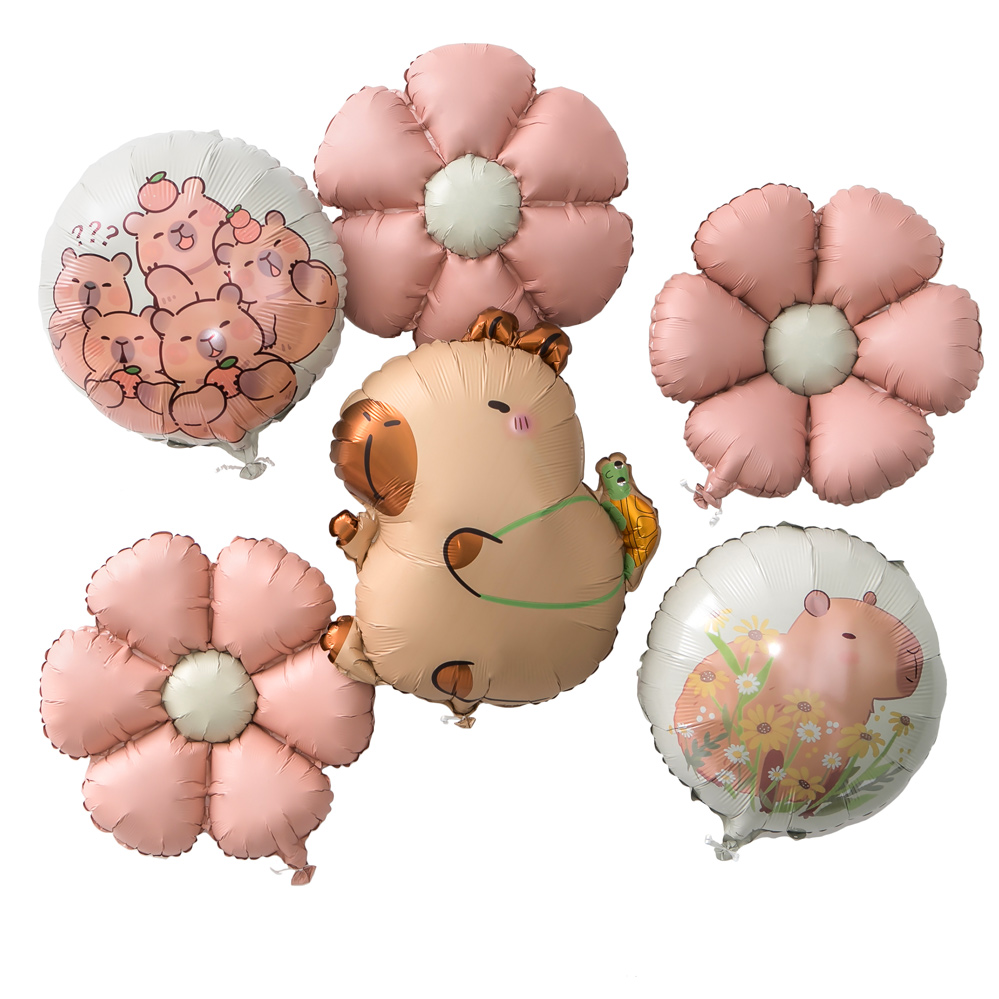 Sada matných fóliových balónov s motívom kapybary – perfektná dekorácia na narodeninové oslavy, výzdobu miestnosti alebo ako zábavné pozadie na fotenie.