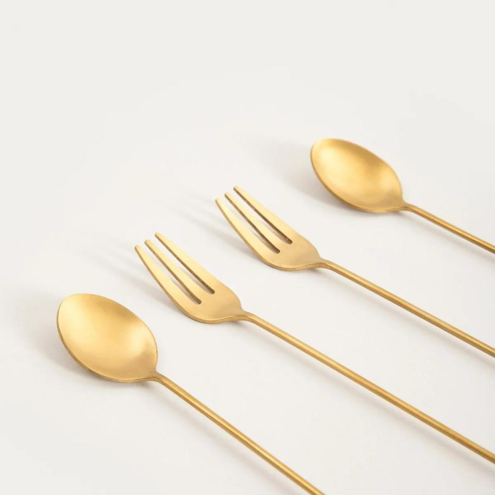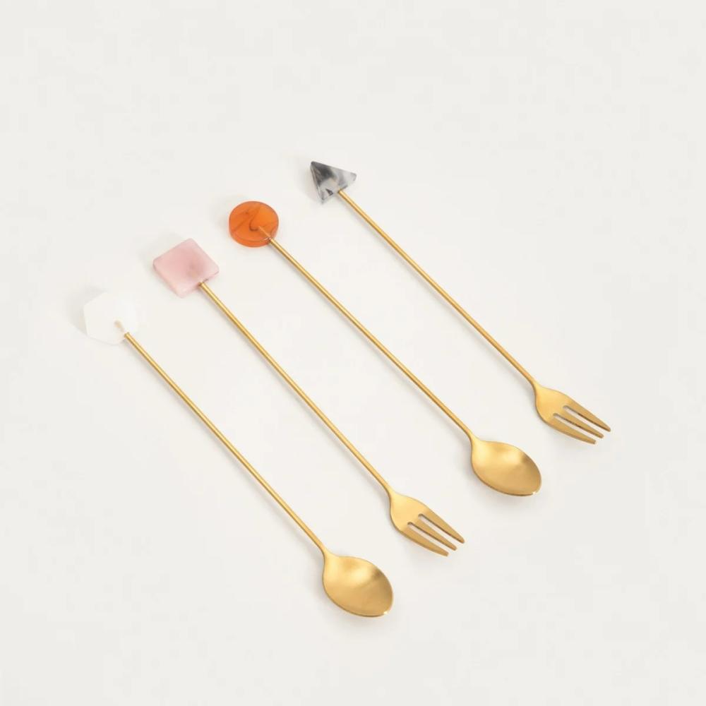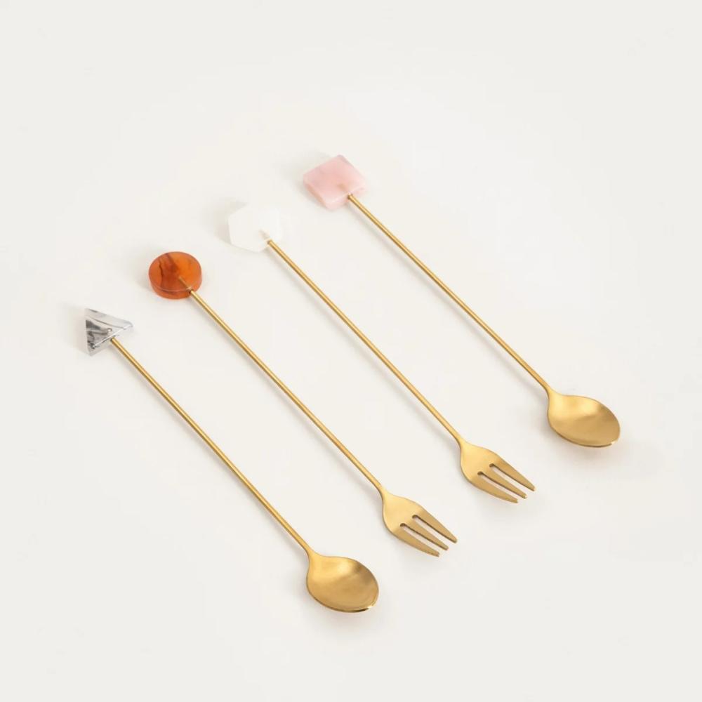 Sada je ideálna na servírovanie dezertov, tort, zmrzliny, ovocia alebo malých občerstvení podávaných po hlavnom jedle. Sada obsahuje 4 kusy a ozdobné zakončenia úchytiek sú dostupné v dvoch variantoch - podľa tvarov zobrazených na fotografiách, čo celej sade dodáva šperkový charakter. Zlatá farba krásne dopĺňa moderné, glamourové aj klasické prostredie. Je tiež vhodnou voľbou na stretnutia s priateľmi, rodinné oslavy a špeciálne príležitosti, keď chcete, aby stôl pôsobil ucelene a štýlovo.