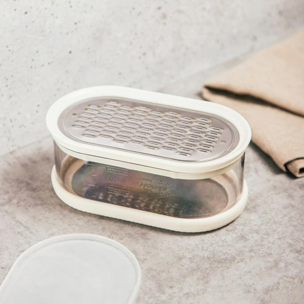 Strúhadlo s nádobou je praktickým riešením pre každodenné varenie. Jeho ostré čepele z nehrdzavejúcej ocele umožňujú efektívne strúhanie syra, zeleniny, čokolády alebo orechov, zatiaľ čo priehľadná nádoba umožňuje pohodlné zhromažďovanie a odmeranie surovín. Vďaka vzduchotesnému veku je možné strúhaný produkt bezpečne skladovať v chladničke.