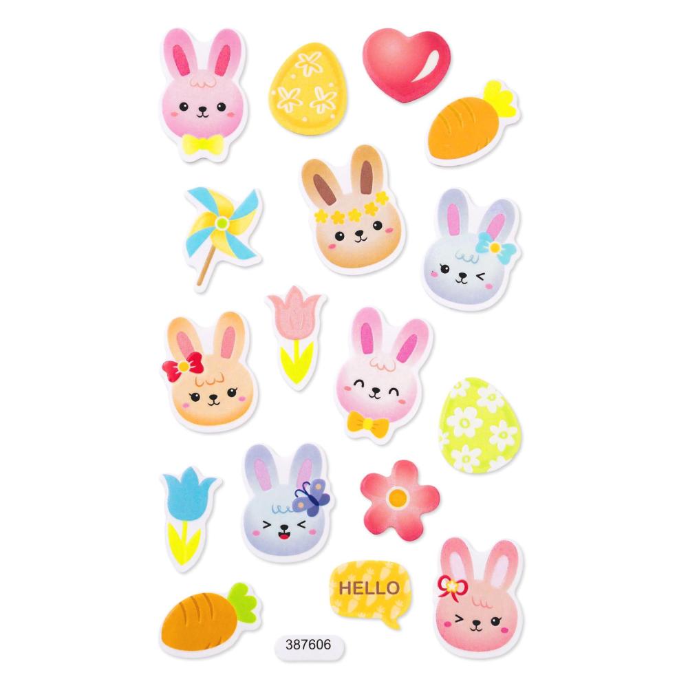 Penové nálepky s jarnými a veľkonočnými motívmi zajačikov a kvetov, ktoré svietia v tme, vyčaria deťom úsmev na tvári! Svietiace nálepky môžu byť pôsobivou dekoráciou detskej izby, ako aj prvkom na zdobenie rôznych predmetov, napr. albumov alebo fotorámikov. Krásne budú vyzerať aj na veľkonočných umeleckých projektoch, napr. na pohľadniciach alebo ručne vyrobených košíkoch. Aby nálepky svietili v tme, stačí ich vystaviť svetlu na 5-10 minút, pri dlhšom čase nálepky svietia intenzívnejšie.