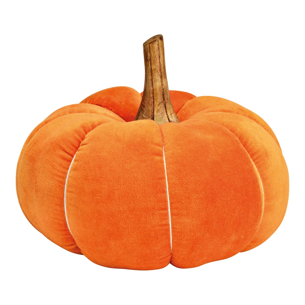 Tekvica s mangovou drevenou stonkou vyrobená z oranžovej textílie.