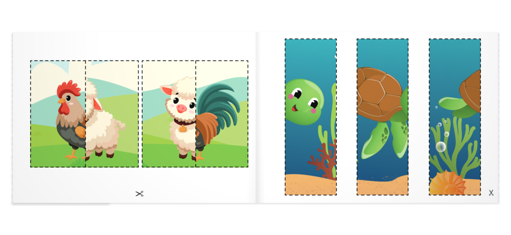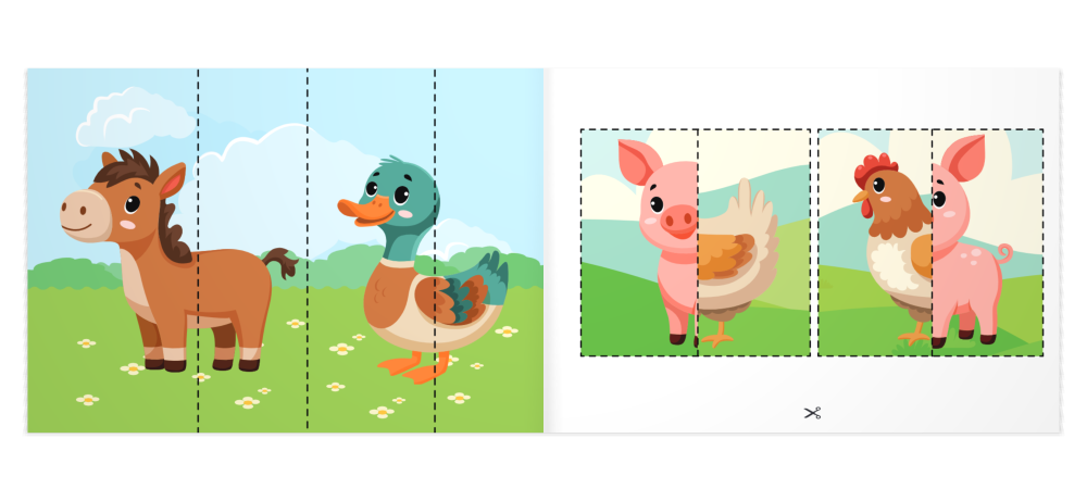 Práca so zošitom je jednoduchá – stačí vytrhnúť hárok, vystrihnúť obrázky podľa naznačených čiar a nalepiť ich na papier (odporúčaný formát A4/A3). Vystrihnuté a nenalepené objekty taktiež môžu poslúžiť ako papierová skladačka, s ktorou sa dieťa môže kedykoľvek zahrať.